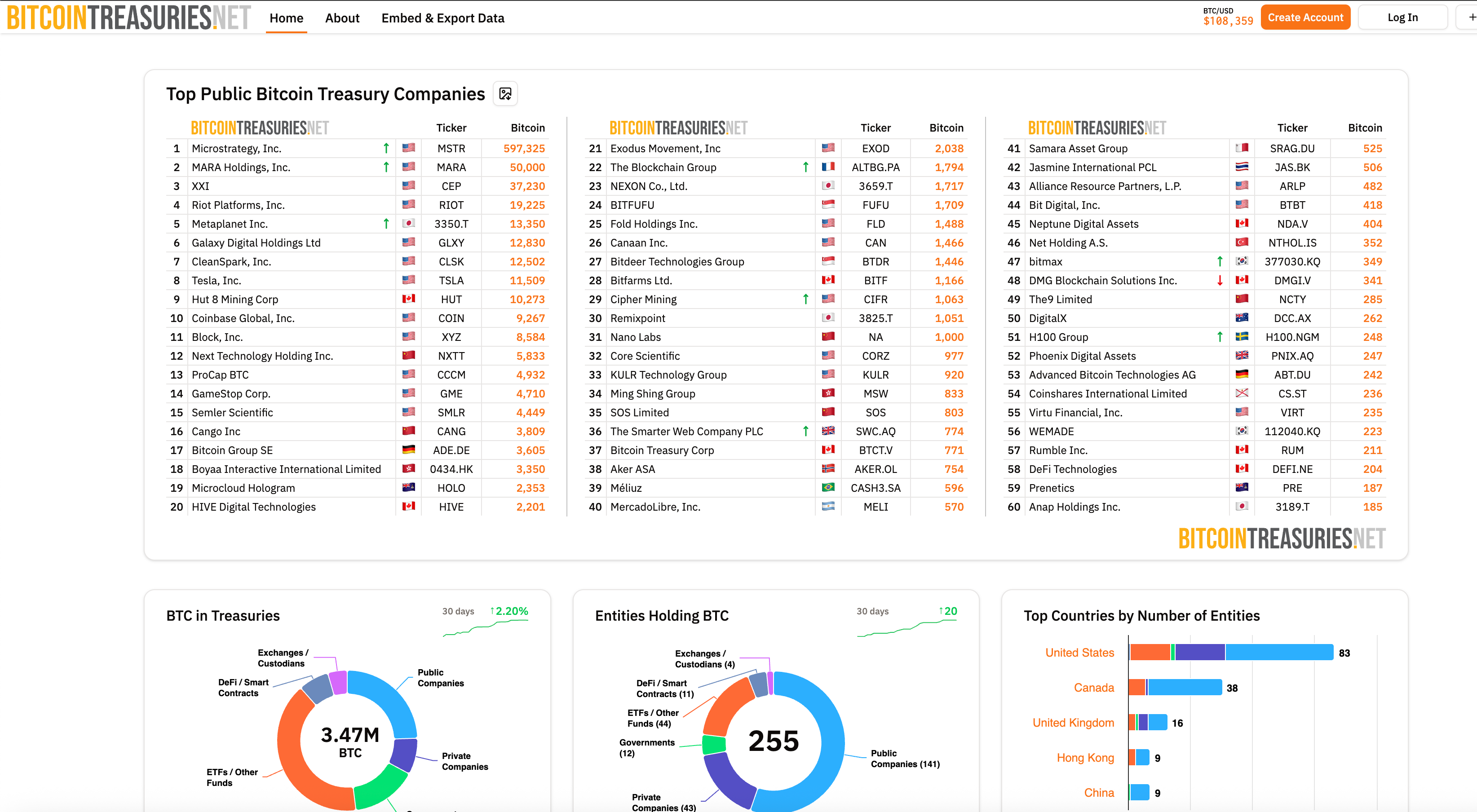 Today's Bitcoin treasuries show a remarkably similar pattern; new entities launch weekly as companies around the world race to replicate MicroStrategy's success. The Bitcoin treasury Cambrian explosion is trackable in real-time via a web dashboard: